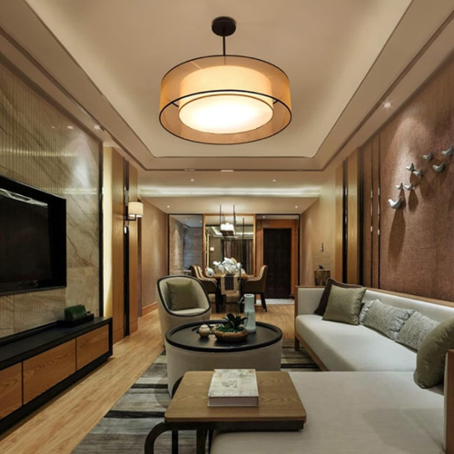 • Elegant Fabric Design: Features a round, translucent gauze shade that enhances the light with softness and sophistication.
