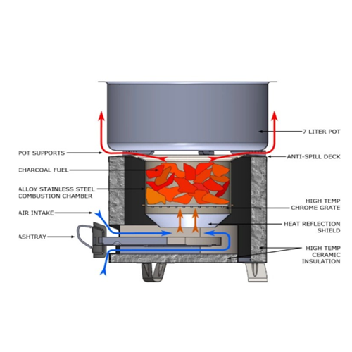 • Ceramic Insulation: Withstands temperatures up to 1300°C, ensuring the stove remains cool to the touch while providing high-temperature cooking.