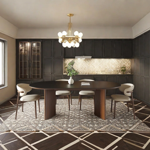 • Durable Materials: Solid and engineered wood paired with sintered stone for lasting beauty and strength.