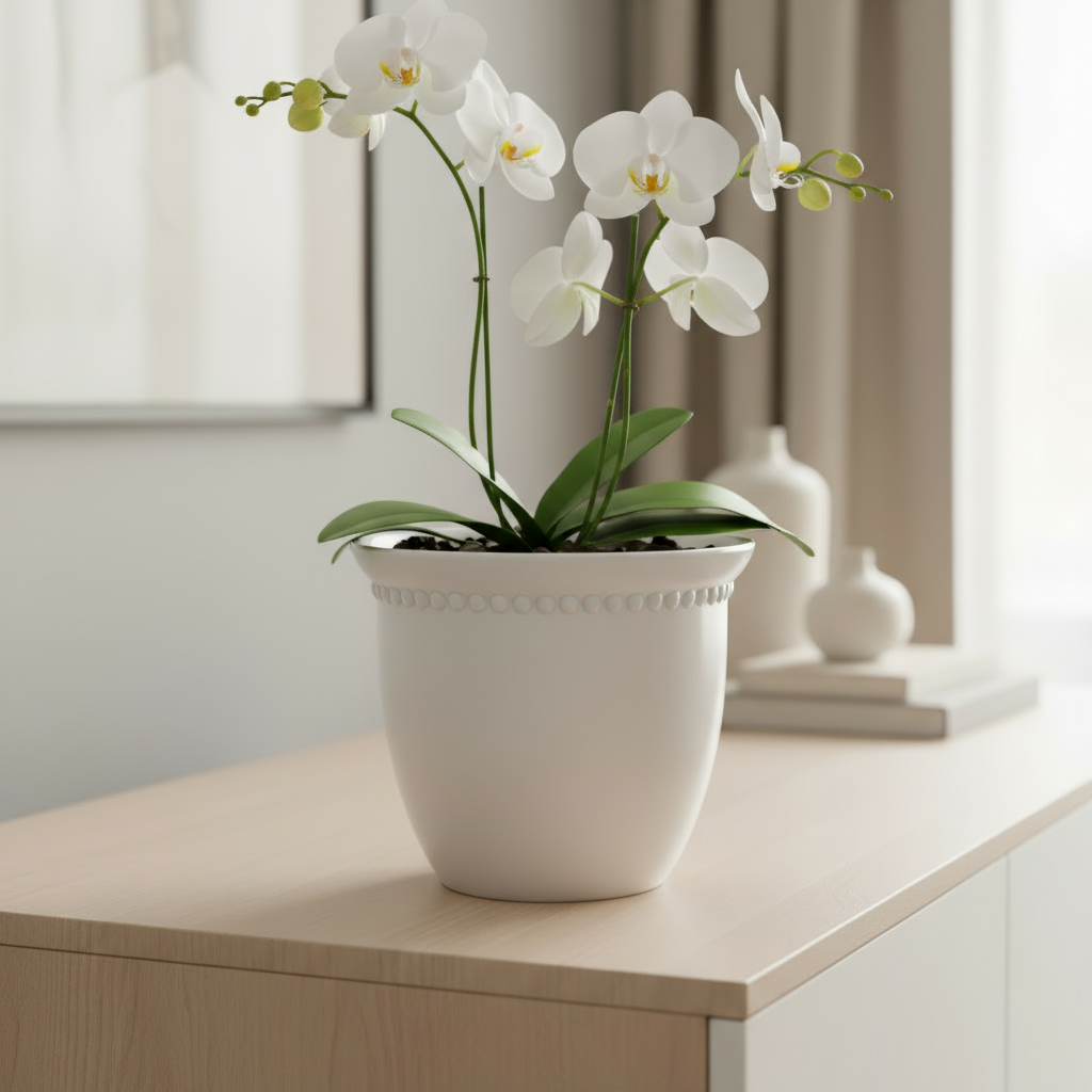 A clean, timeless silhouette and neutral white tone complement any décor style—from contemporary chic to rustic charm.