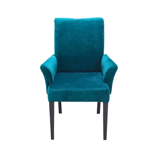 • Elegant Design: The Novo 2 chair features a fully upholstered solid wood frame with arms, covered in stylish blue plain fabric for a modern look.