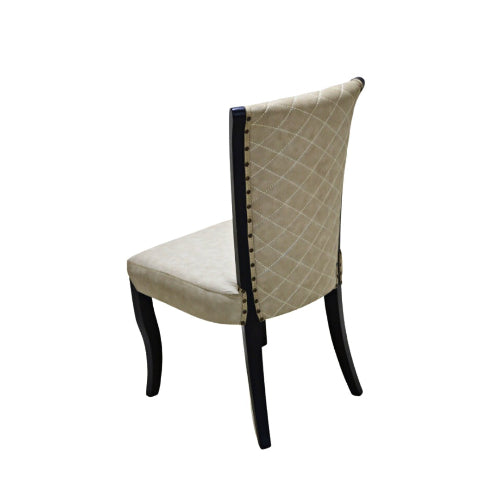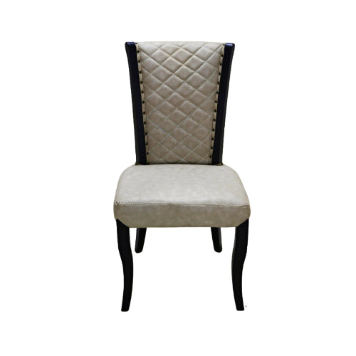 • Elegant Design: The Vicki 2 chair features a fully upholstered solid wood frame covered in chic grey leatherette, accented with stylish pin heads for a modern touch.